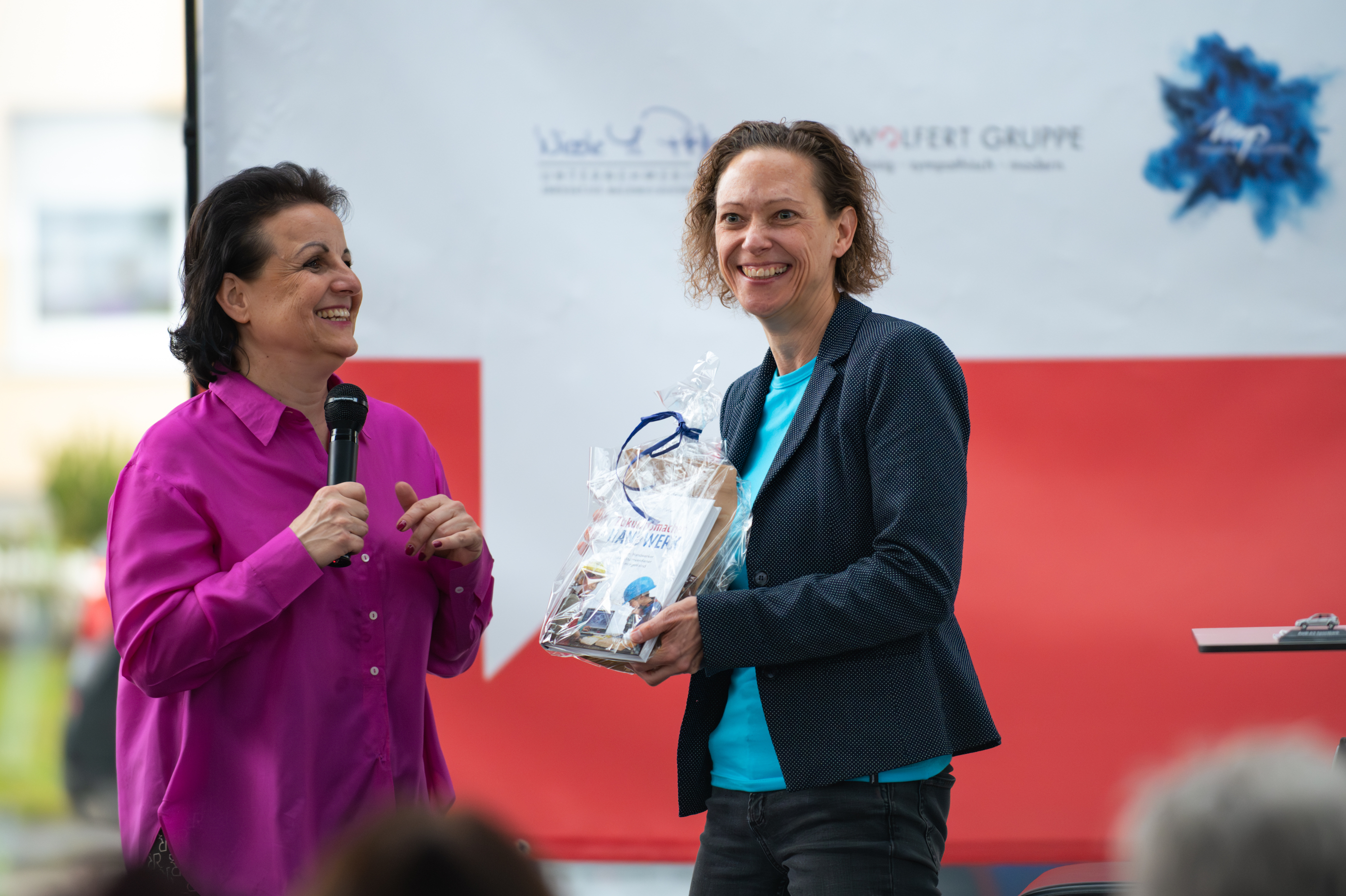 Monique Haas Vorsitzende Kreishandwerkerschaft als Lokal-Matadorin und ein Überraschungsgast aus einem Handwerks-Konzern.